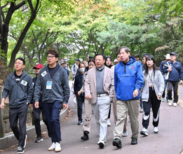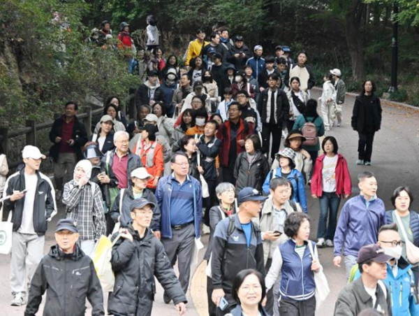 알록달록 물들기 시작한 가을 속으로 건강한 걸음을 내디딘 참가자들은 백범광장을 시작으로 남산 북측 순환로를 따라 국립극장까지 걸은 뒤 다시 출발점으로 되돌아왔다. 참가자들이 왕복 6㎞를 걷는 동안 정형외과 의사들도 함께하며 시민들의 질문에 친절히 답했다. 상담을 받은 정진홍(75)씨는 “걸으며 건강 챙기고, 의사 상담도 받을 수 있어 일석이조”라고 말했다. 노경환 강남본정형외과의원 원장은 “고령층이라면 근감소증을 주의해야 무릎 건강을 지킬 수 있다”며 “근육은 약이나 주사로 유지되지 않기 때문에 정기적으로 30분 이상 숨이 찰 정도의 걷기 운동을 하는 게 좋다”고 조언했다.